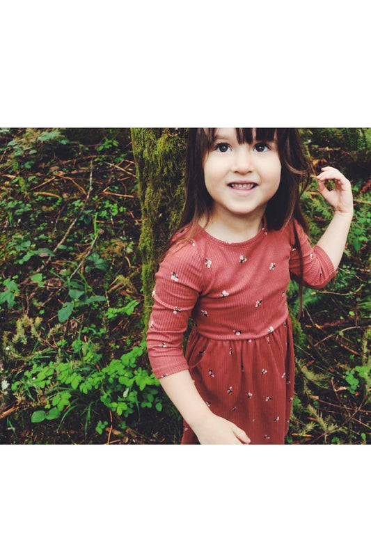 Clay Floral Ribbed Dress (Sizes 4-6X)