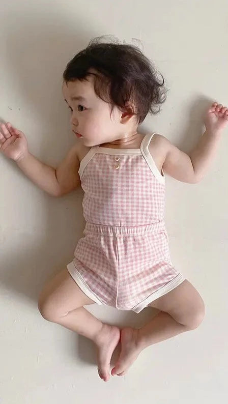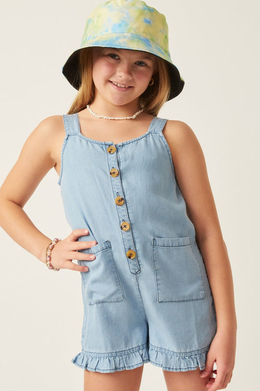 Girls Blue Checkered Terry Burnout Tank Romper (Sizes S-XL)
