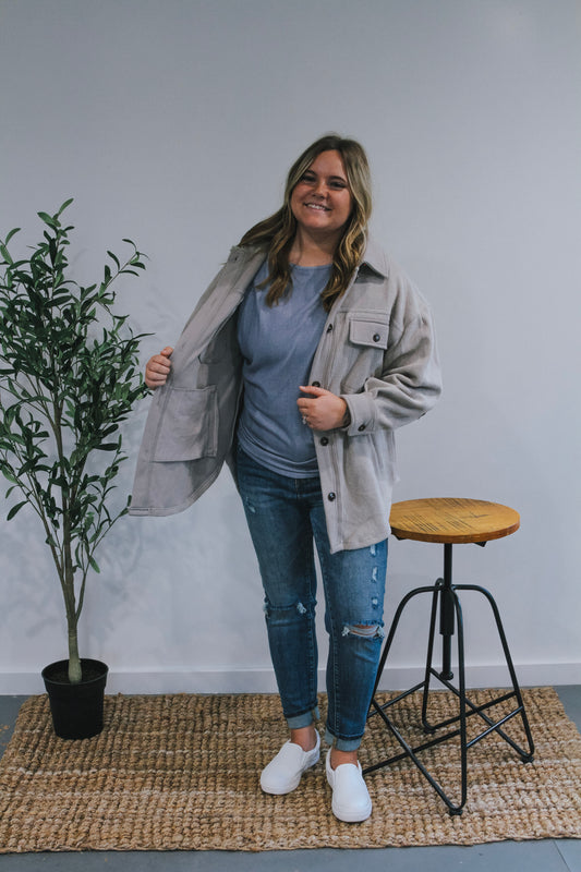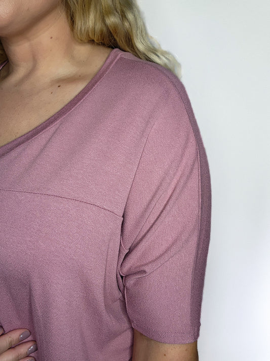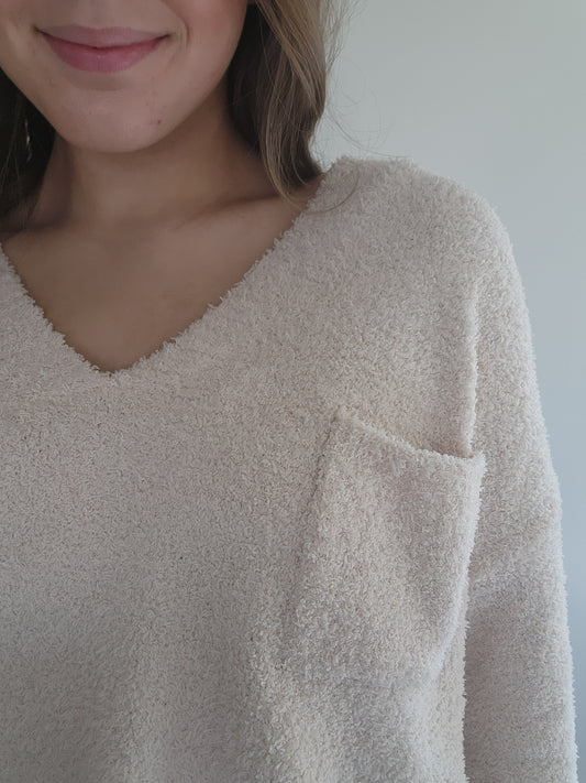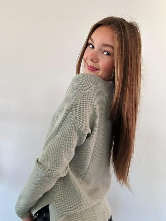 Dusty Sage Soft Waffle V-Neck Sweater with Side Slits
