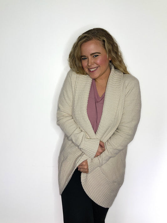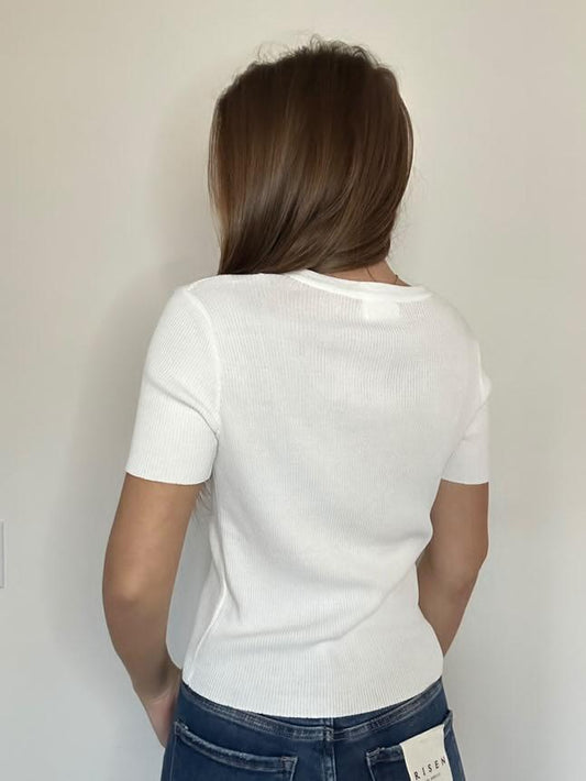 Off White Short Sleeve Ribbed Easy Button Front Light Cardigan