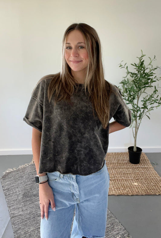 Double Gauze Acid Washed Tiered Ruffle Peplum