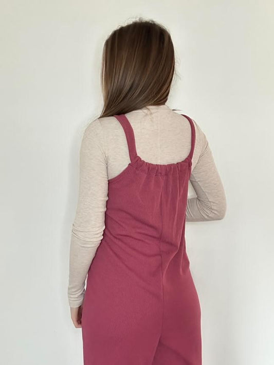 Redbean Knit Jumpsuit with Front Patch Pockets