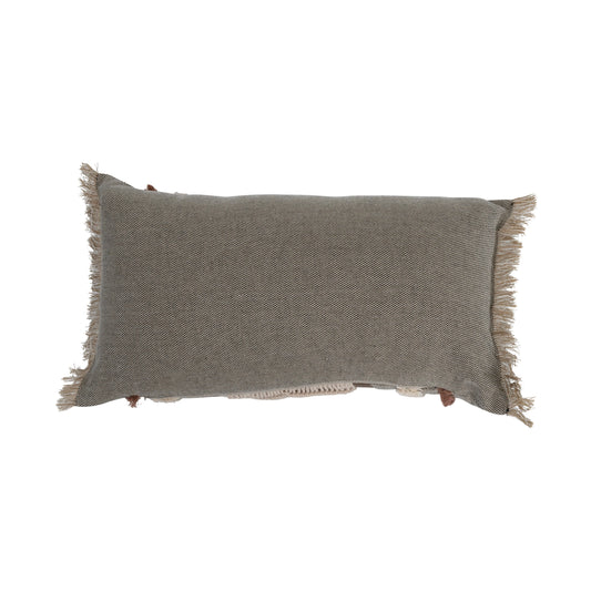 18" Woven Cotton Dhurrie Pillow with Fringe