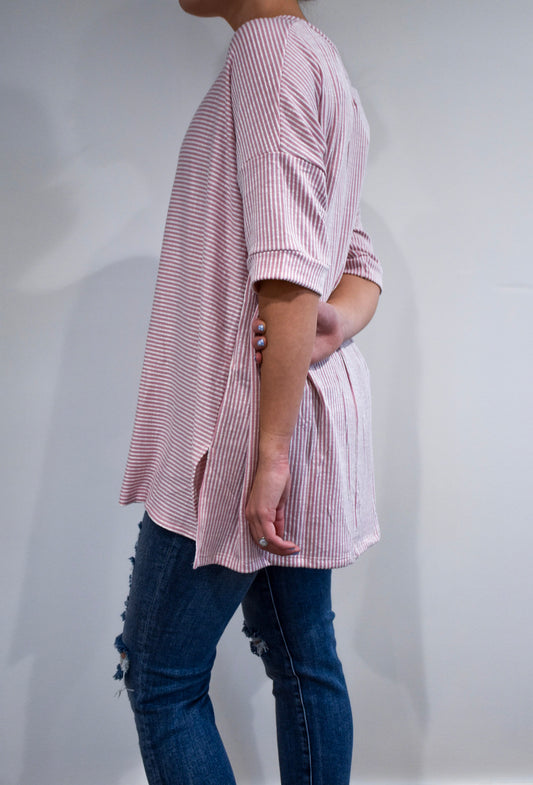 Mauve Striped 3/4 Sleeve Oversized Top