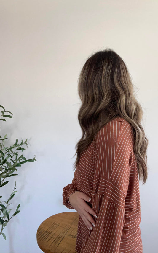 Striped Cozy Light Weight V-neck Pullover Sweater with Side Slits