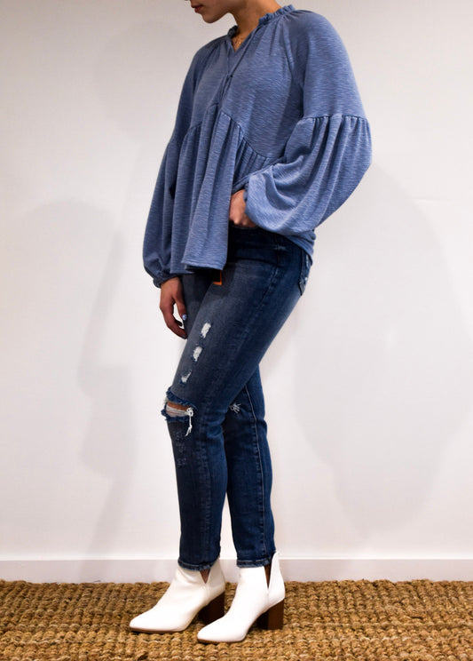 Black Soft Elbow Sleeve Mixed Texture V-Neck Dolman Sweater