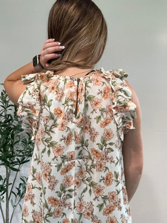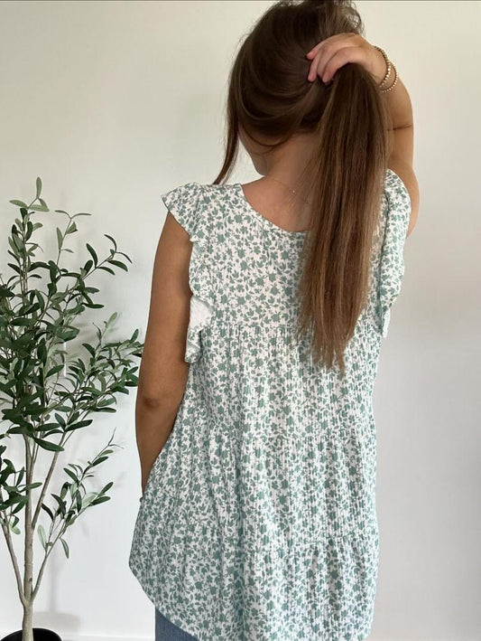 Sage Butterfly Sleeve Ditsy Floral Tiered Top