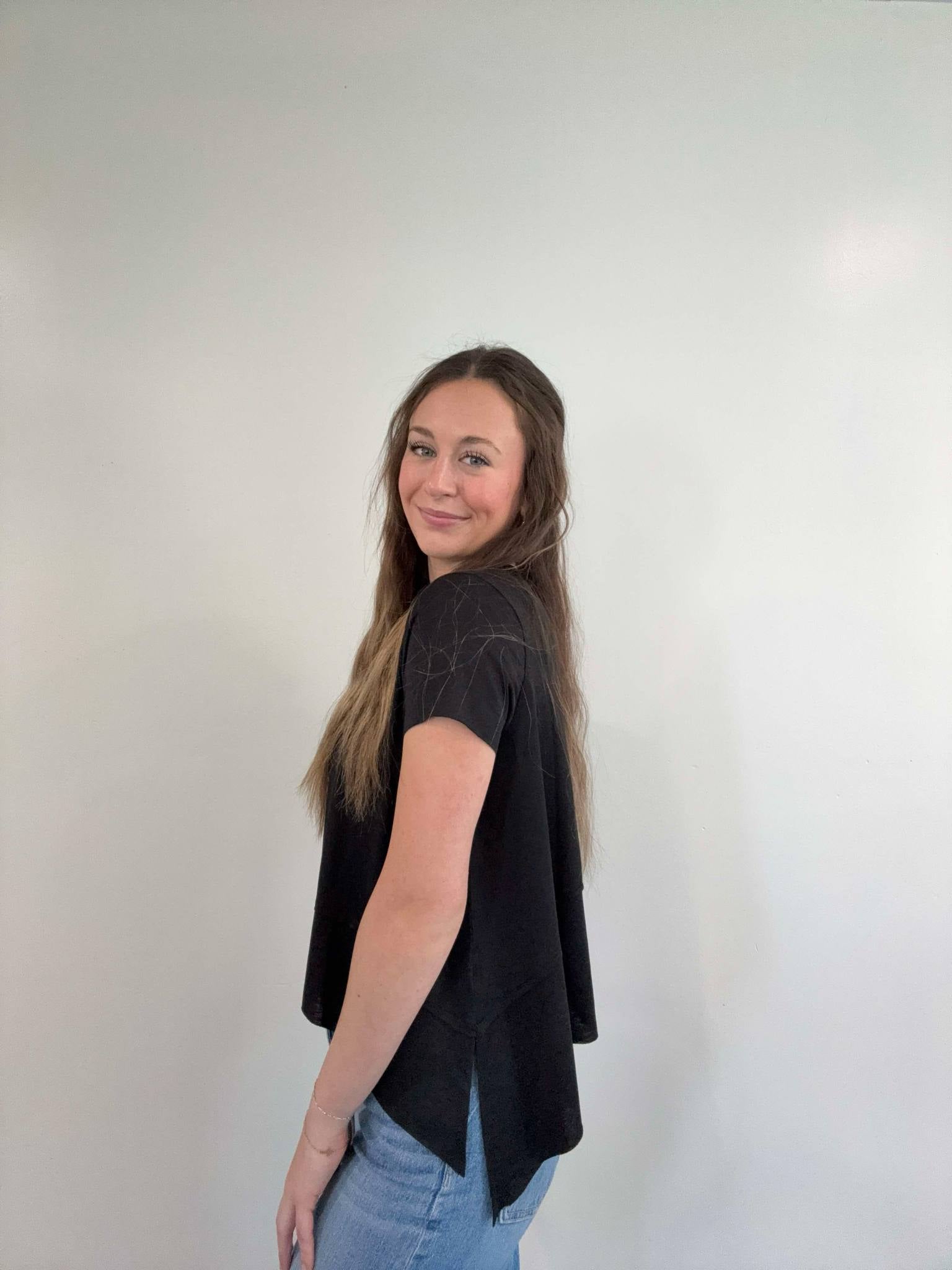 The Shark Bite Side Slit Short Sleeve Top from Rosebud’s Cottage is the perfect blend of comfort, style, and everyday versatility. Crafted from a soft and stretchy 93% polyester and 7% spandex fabric, this top features a flattering shark bite hem with side slits that create beautiful movement and a relaxed, easy fit. Its lightweight feel and flowy silhouette make it ideal for pairing with leggings, jeans, or shorts for a polished yet effortless look. Available in three essential colors—Marlin, Light Grey, and Black—this chic short sleeve top is a must-have wardrobe staple for any season.
